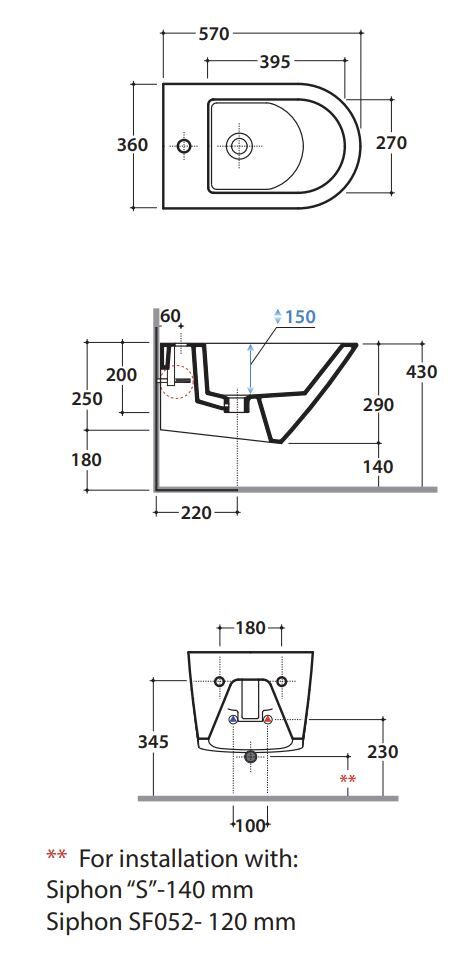 Биде подвесное Globo FORTY3 FOS09BO