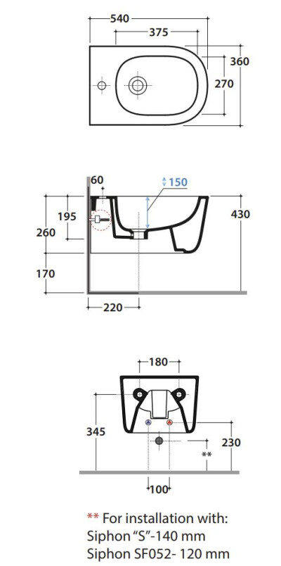 Биде подвесное Globo LALITA LTS09BI