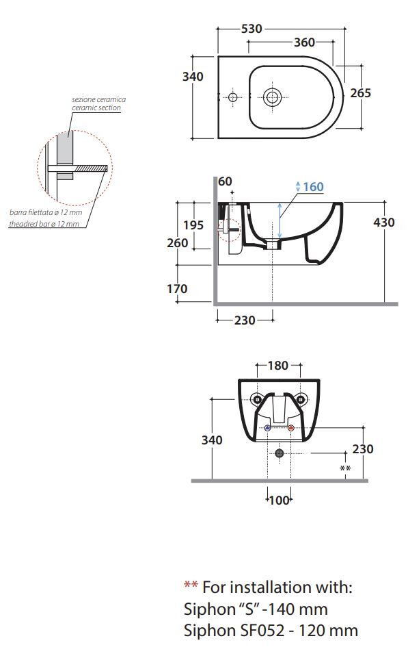 Биде подвесное Globo MODE MES09BI