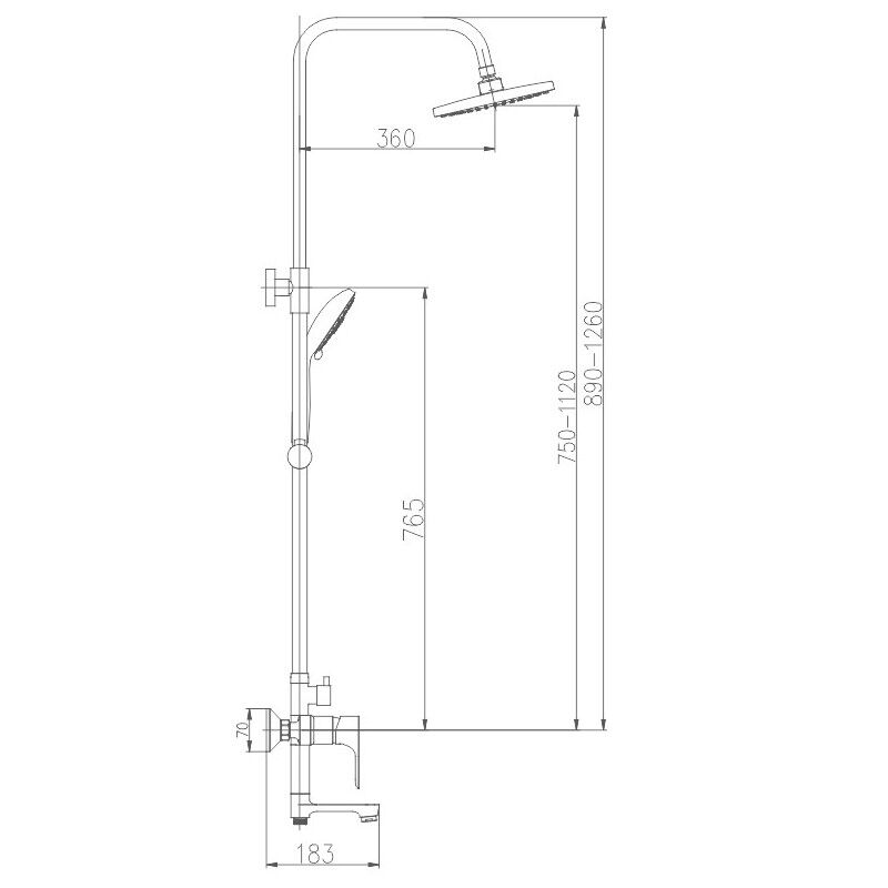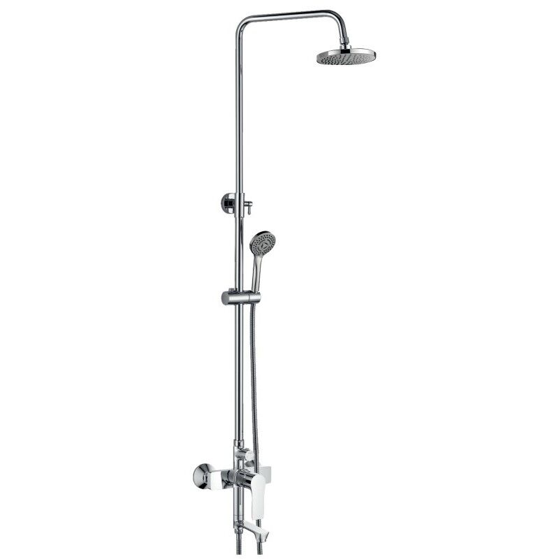 - Комплектация: верхний душ, душевая штанга, держатель душевой лейки, ручной душ, смеситель, шланг
