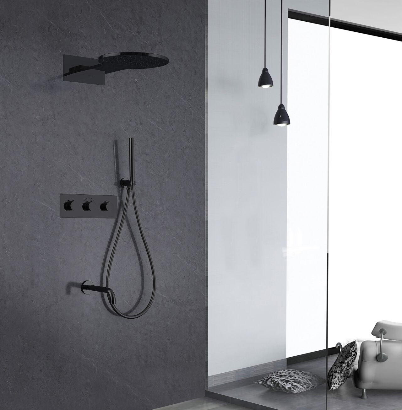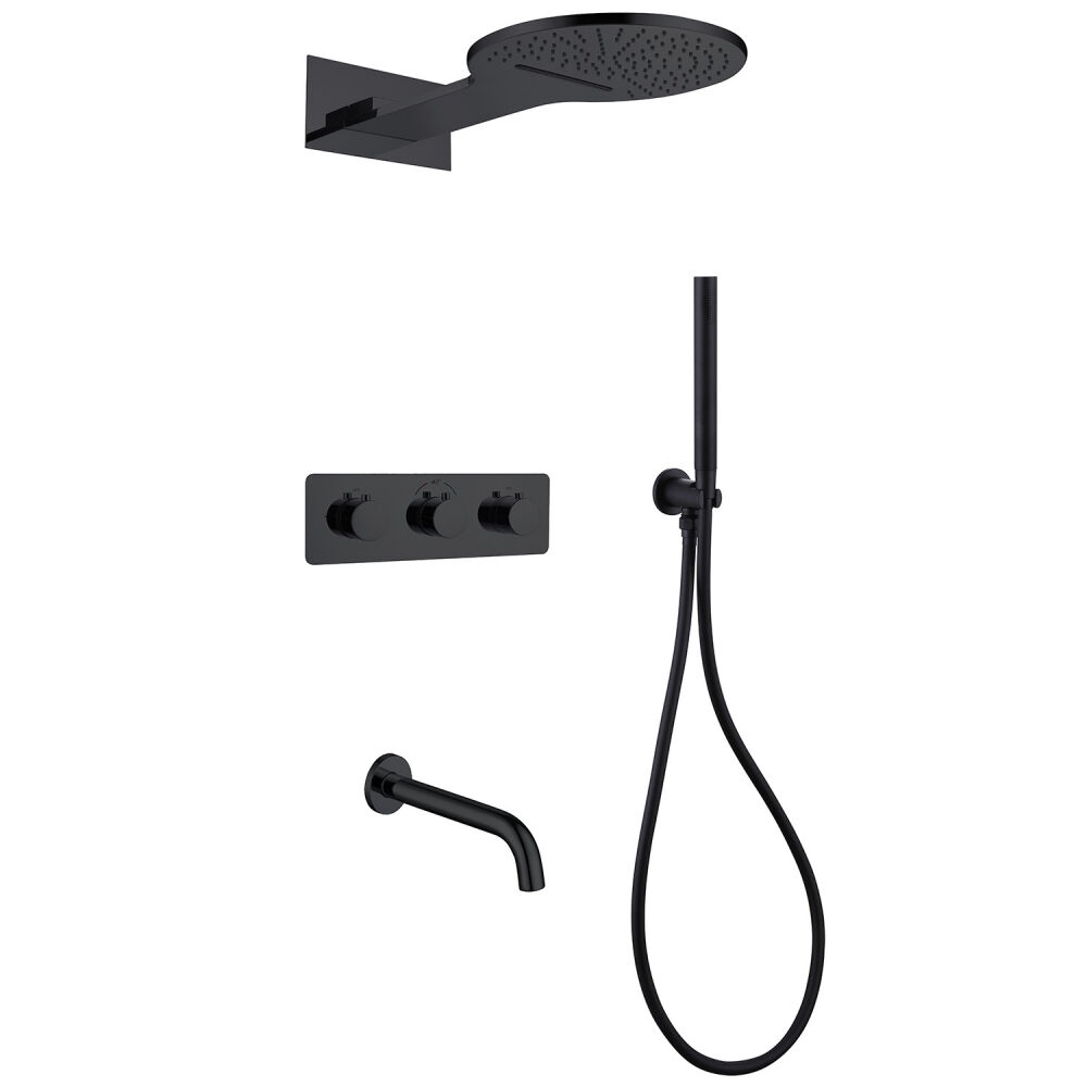 Душевая система ABBER Wasser Kreis AF8150B скрытого монтажа с изливом, термостат, черная матовая