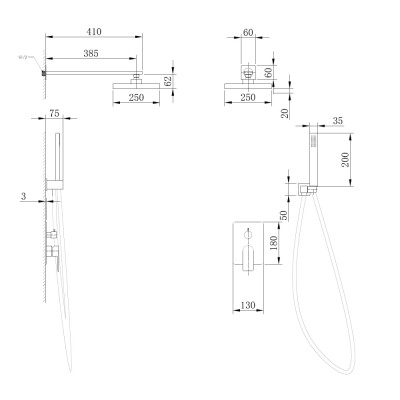 Душевая система ABBER Weiss Insel AF8018B скрытого монтажа без излива, черная матовая