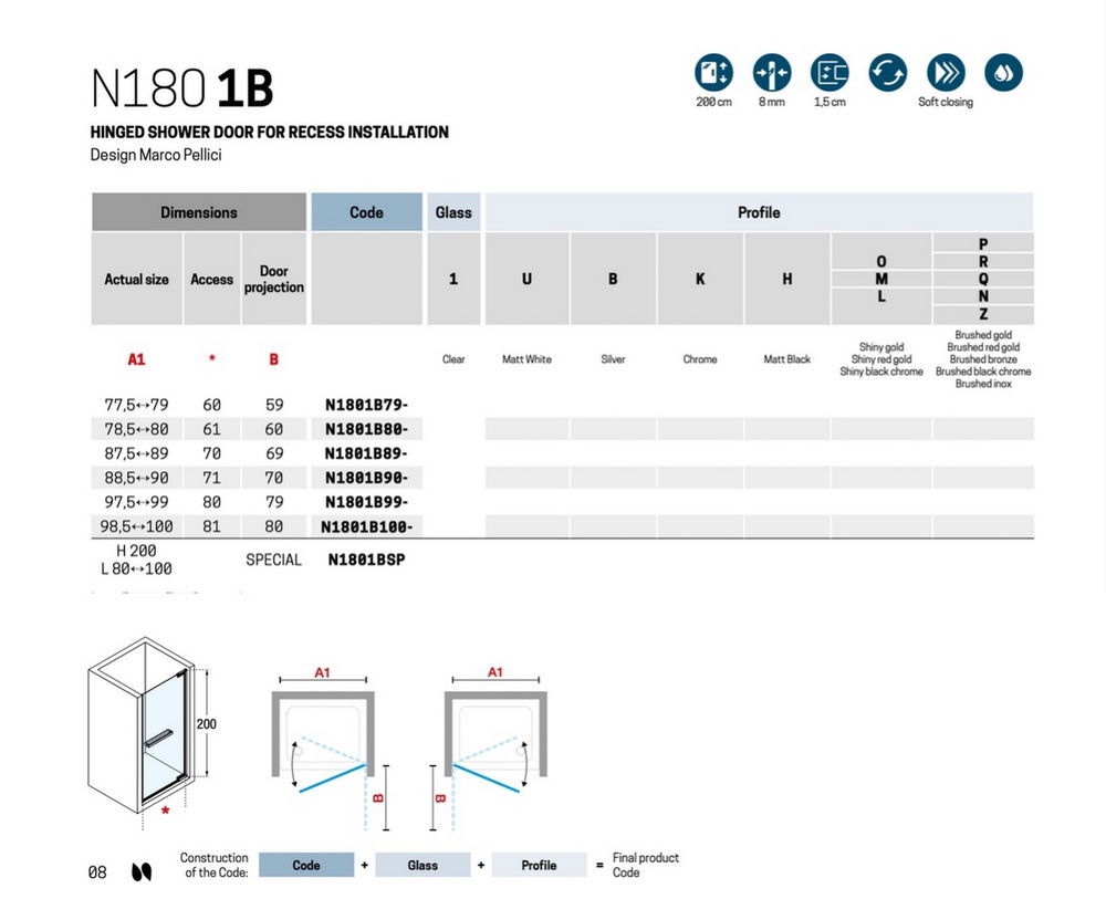 Душевая дверь Novellini 90 N180 N1801B90-1P