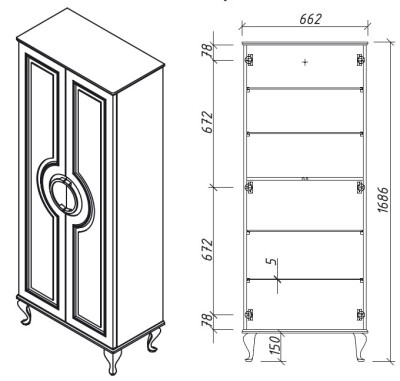 - Полки (материал, количество): ЛДСП/ 1 шт/ Стекло/4 шт