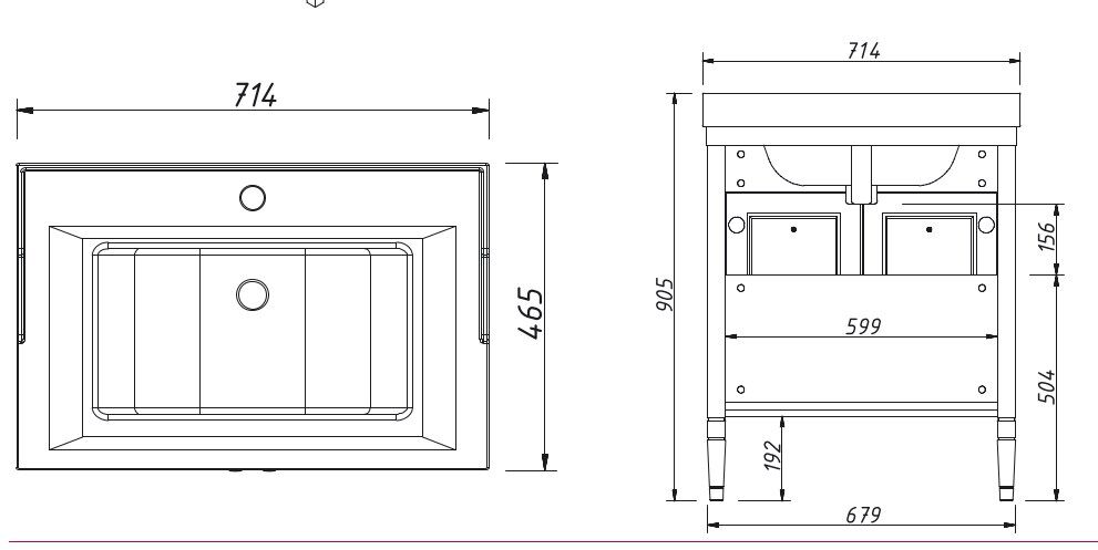 - Под умывальник шириной, см: 70