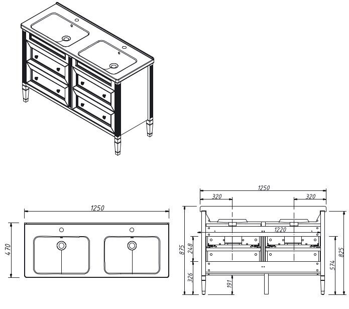 Тумба напольная Caprigo Albion Concept 125 34021-SF024