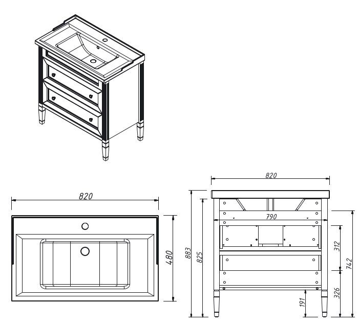 Тумба напольная Caprigo Albion Concept 80 34015-SF013