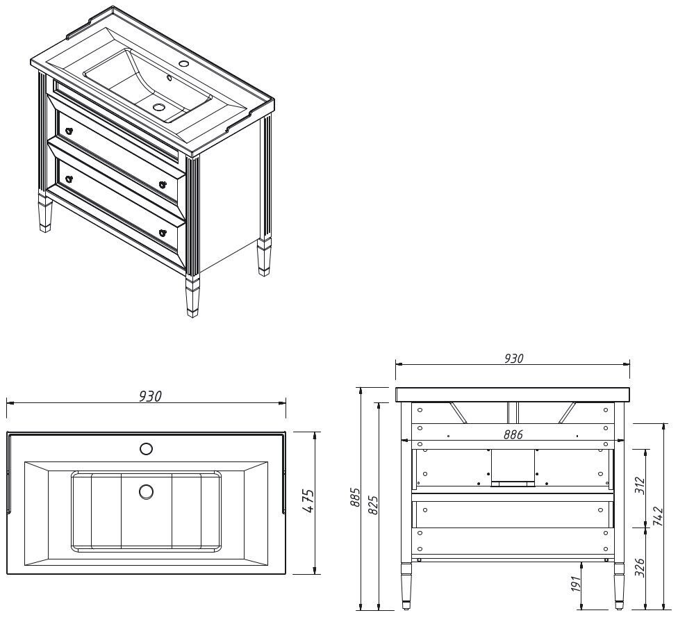 Тумба напольная Caprigo Albion Promo 90 33320-B002