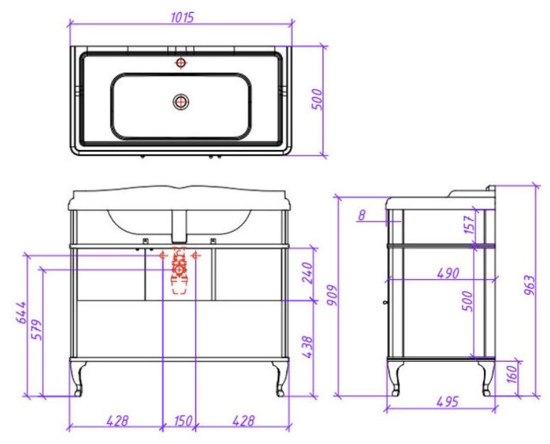 - Система хранения: 3 дверцы