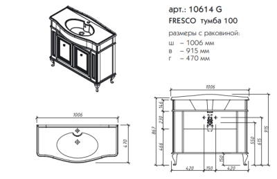 Тумба напольная Caprigo Fresco 100 10614G-B016