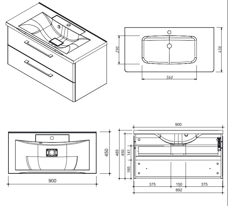 - Под умывальник шириной, см: 90 см