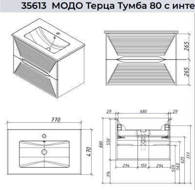 - Боковые стенки (материал+способ покрытия): МДФ/влагостойкая ламинация