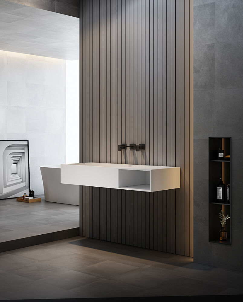 Тумба с раковиной ABBER Stein AS2640 подвесная, белая матовая