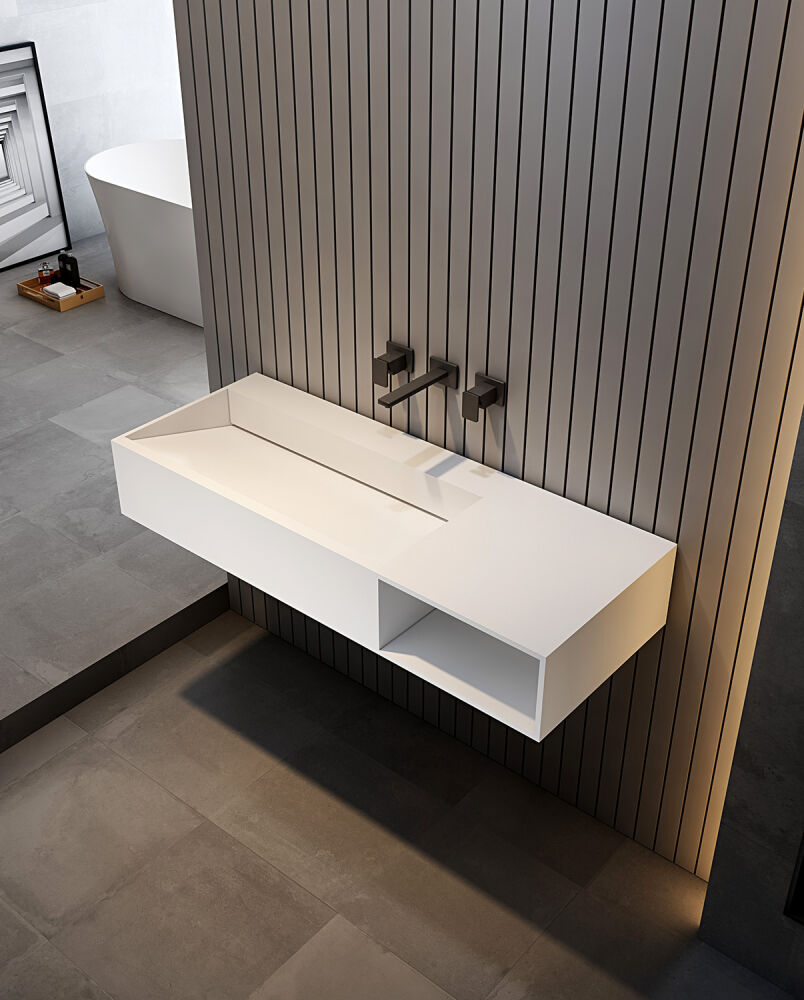 Тумба с раковиной ABBER Stein AS2640L подвесная, белая матовая