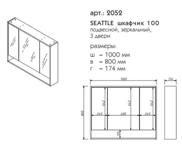 Зеркальный шкаф Caprigo Seattle 100 дуб кантри 2052-1007