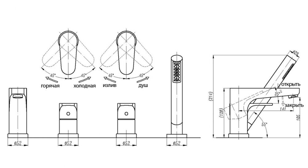 Смеситель ABBER Eleganz AF8313B на борт ванны, черный