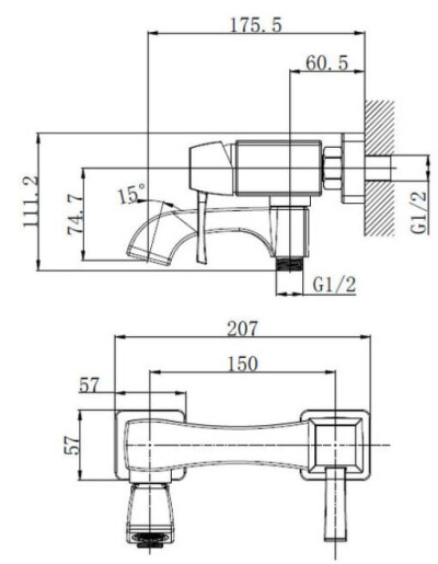 - Длина излива, мм: 115