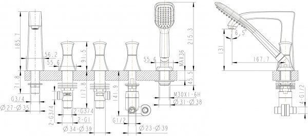 Смеситель на борт ванны с лейкой Bravat Whirpool F578112C