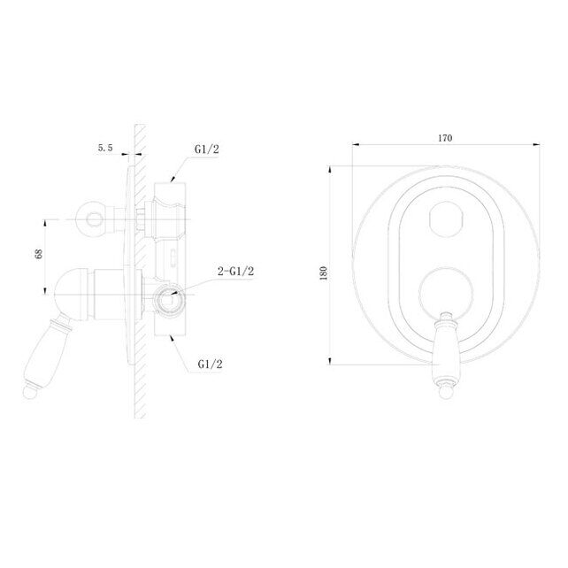 Смеситель для душа Caprigo Adria-uno 02-551-CRM