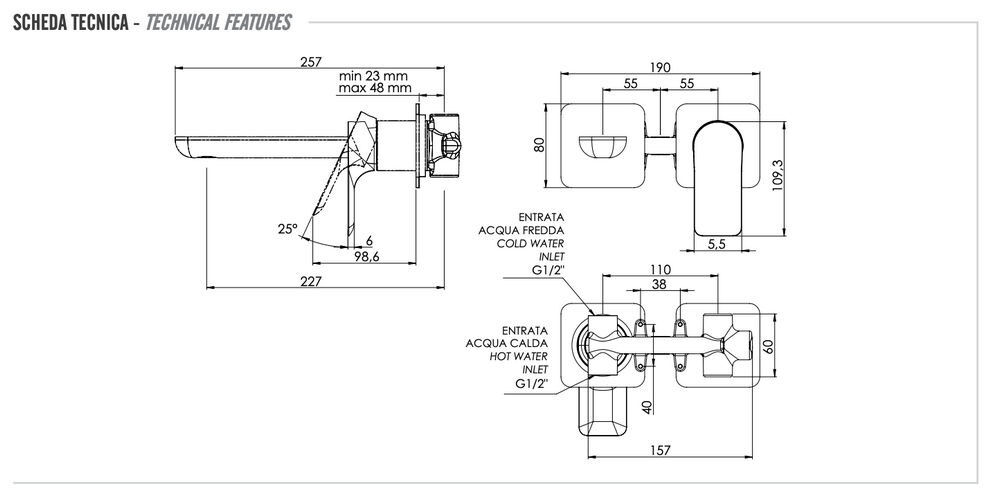 - Длина излива, мм: 230