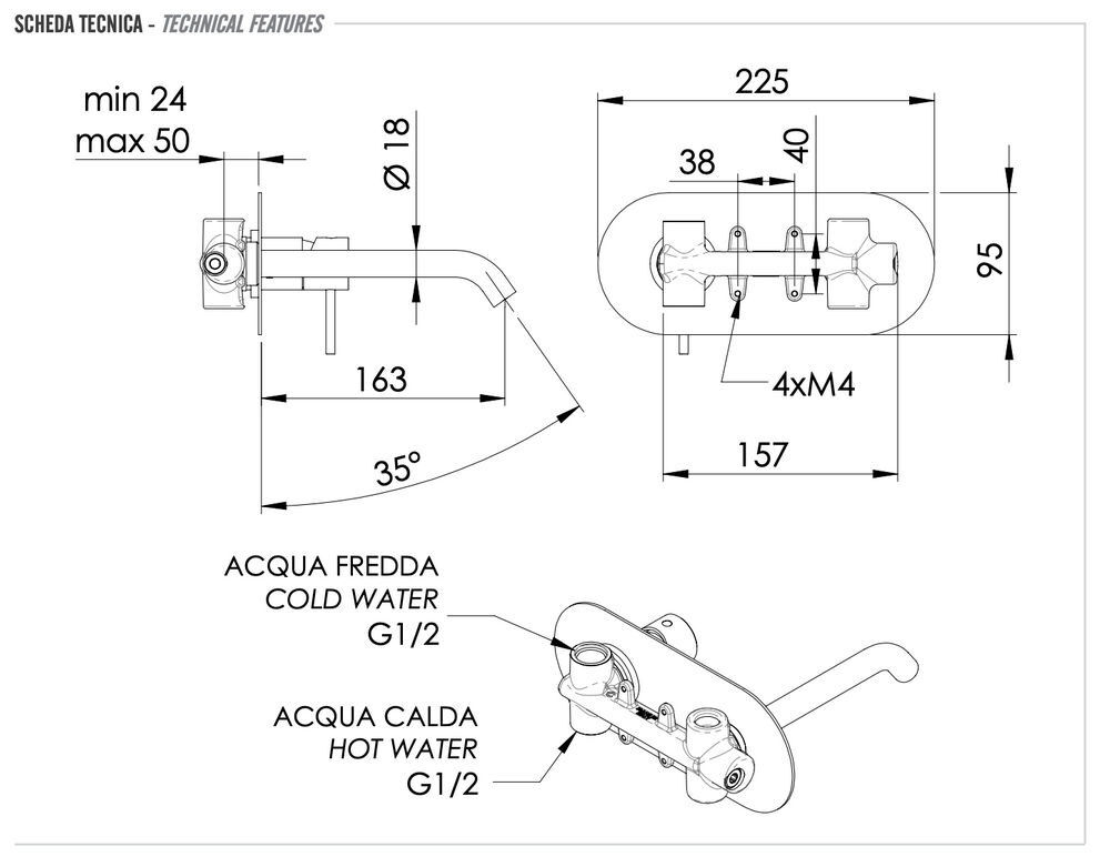 - Длина излива, мм: 163