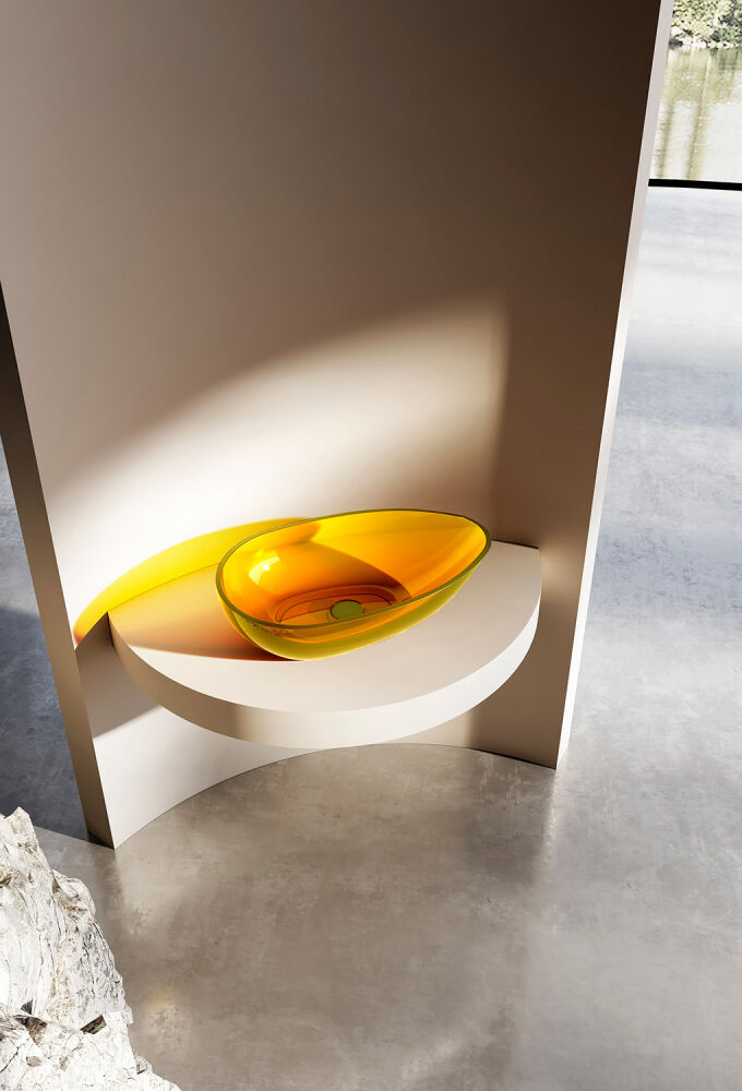 Раковина накладная прозрачная ABBER Kristall AT2811Amber желтая