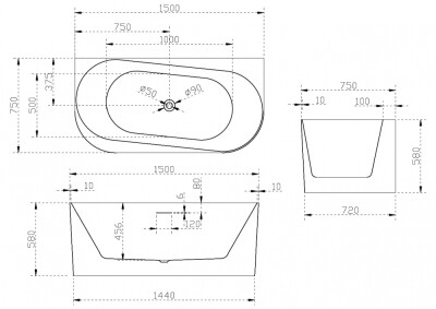 Акриловая ванна ABBER AB9494-1.5