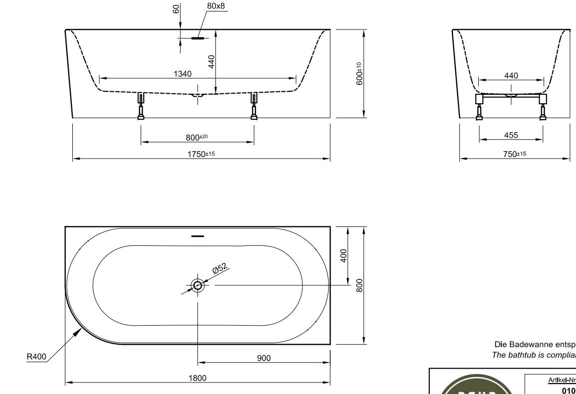 - Диаметр сливного отверстия, мм: 52